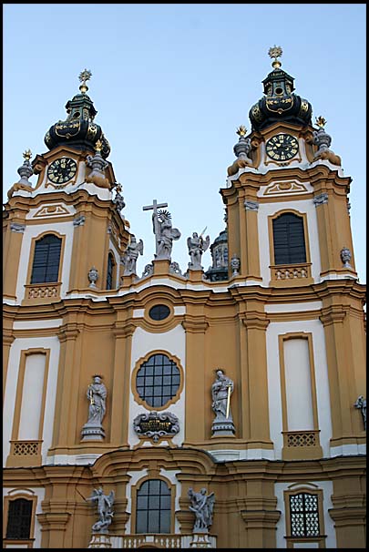 Twin clock towers of Melk Abbey, Melk, Austria