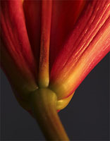 blood-red flower, Rich. The colors are incredibly saturated and lush,