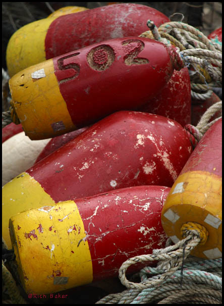 These floats are used to mark the location of crab nets.