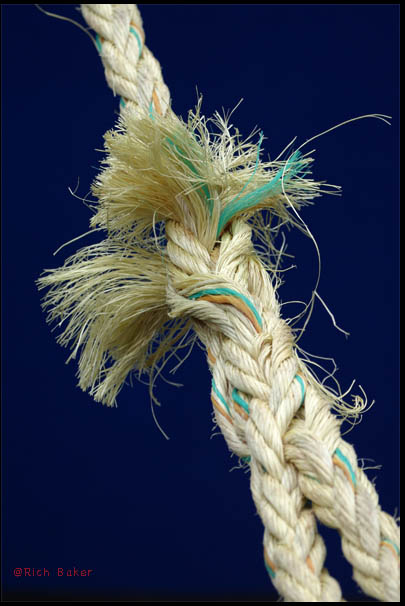 Detail of the splice in a line used to secure a boat to the dock.
